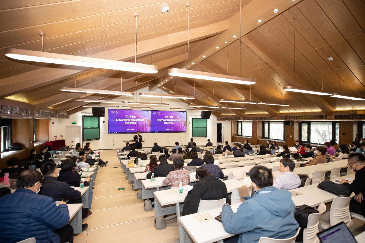 会上,欧阳沁介绍了2021年度校机关创新服务管理实效奖申报情况和评选规则。为进一步加强优秀成果交流互鉴,促进校机关与院系支撑服务机构的工作交流,创新服务管理实效奖的评选以现场交流评审的方式开展。交流会上,14个部门总结提炼出14项在创新工作方式方法、提高服务管理水平等方面有突出表现的具体工作或项目进行展示介绍,现场评审从问题导向、创新性、协同性、实效性四个维度展开评估,最终从中评选出4项优秀成果予以奖励。