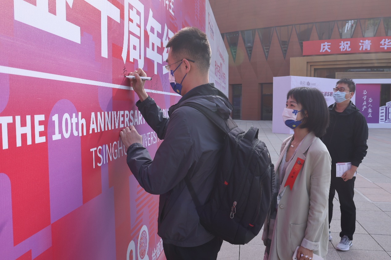佩上红胸签,戴上精心设计的08级秩年定制口罩和纪念徽章,在签名墙留下返校的纪念……阔别母校十年的校友再次踏上熟悉的校园路,满心是欢喜,满眼是笑脸。