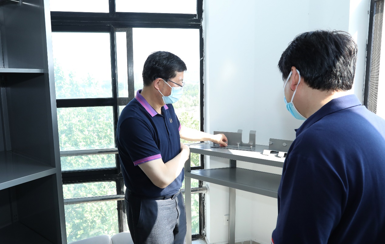 “同学们能够到顶部的储物柜吗?爬梯是不是足够安全?”说着,邱勇走上爬梯,模拟同学们从高处储物柜取放物品的过程。发现个别储物柜可能受到天花板灯管影响柜门无法打开时,邱勇强调一定要亲自操作试用,发现、解决实际使用中的不便之处。