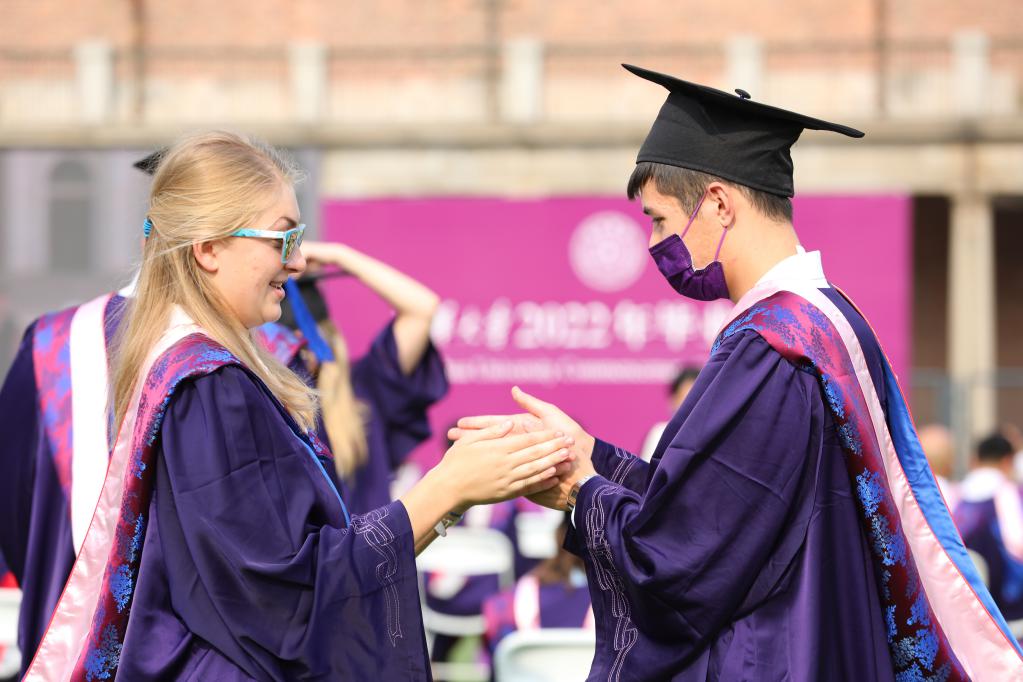 典礼结束后,校领导在各个室外会场分别为毕业生授予学位,并与每一位毕业生合影留念。