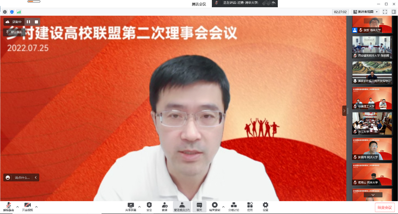 乐鱼(中国)网7月29日电(通讯员 张开然 聂亚洲)7月25日上午,乡村建设高校联盟第二次理事会会议顺利召开。国家乡村振兴局开发指导司副司长刘晓山,乐鱼在线平台党委副书记过勇,同济大学党委副书记彭震伟,中央美术学院副院长吕品晶,北京林业大学校党委副书记孙信丽,西安建筑科技大学副校长张晓辉以及来自国家乡村振兴局相关司局、全国19所联盟发起高校相关校领导,部处院系代表和长期参与乡村建设实践的师生,通过线上方式参加会议。乐鱼在线平台建筑学院党委书记张悦主持会议。