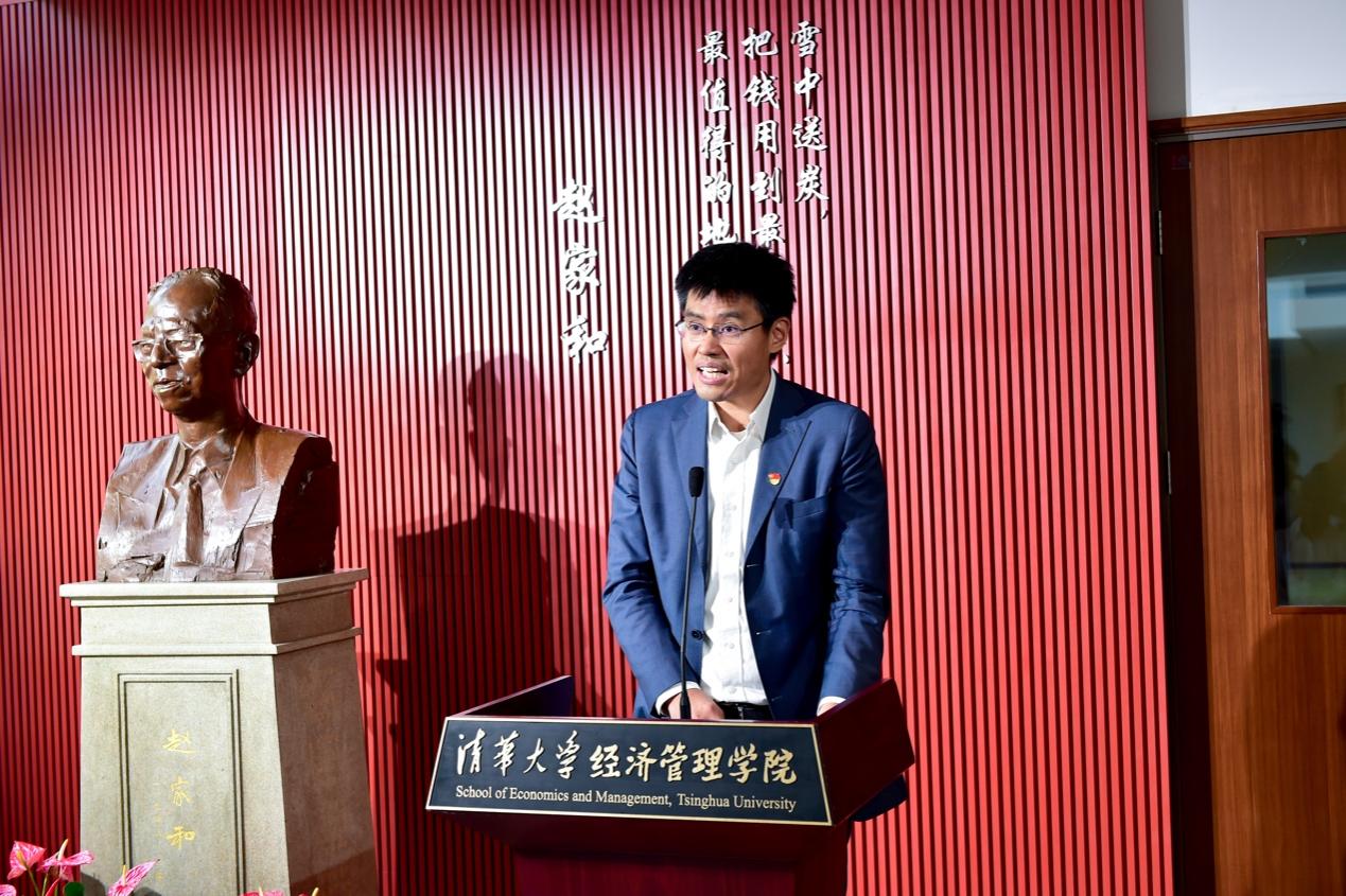 向波涛、连辑、陈煜波、白重恩、李鹤、陈章武共同为雕像揭幕。