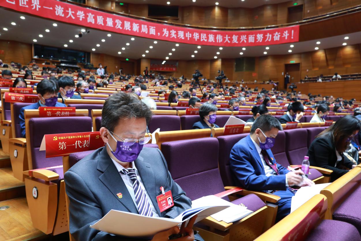 今天,新清华学堂内气氛庄严热烈。镰刀锤头组成的中国共产党党徽悬挂在主席台正中,熠熠生辉;十面鲜艳的红旗分列两侧,交相辉映。上午9时,大会在雄壮激昂的国歌声中开幕。