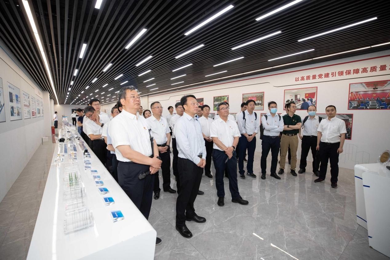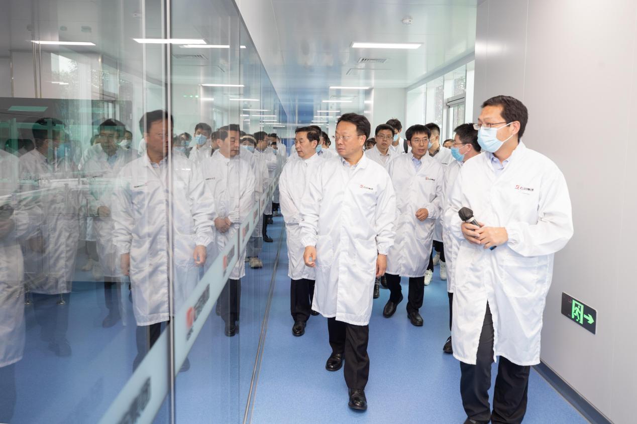 王希勤一行参观研究院工艺平台,了解研究院发展历程和研究开展情况,并前往芯片制造线察看生产流程。