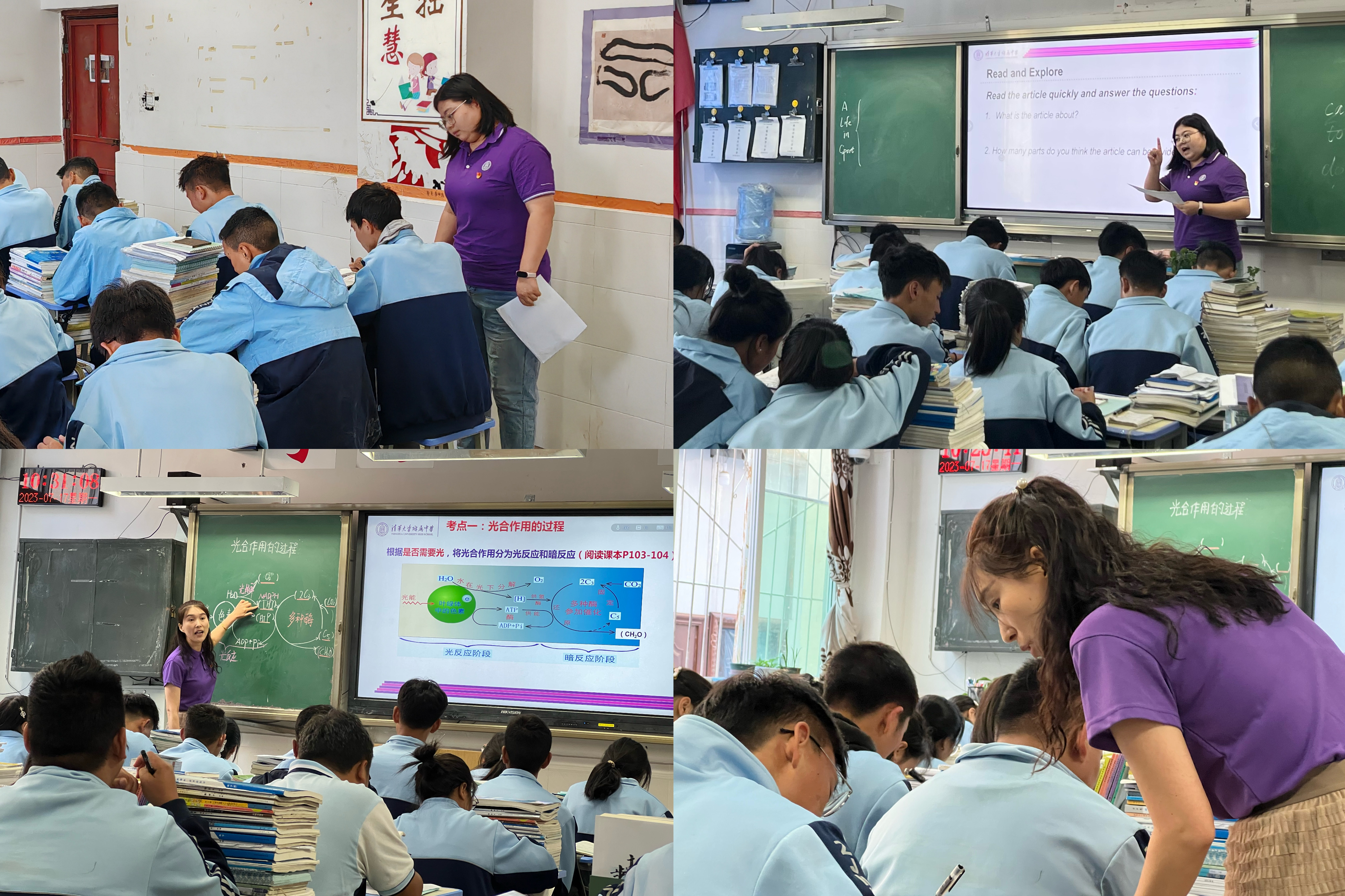 清华附中教师分别与当地教师展开“同课异构”示范课活动。为上好示范课,支教团老师们提前近一个月就开展两校教师交流,对授课主题、学情、教材等进行周密调研。双方教师见面后通过授课前后的深入研讨,从教学设计、教育理念、课堂实操等方面进行深度碰撞,发挥出“同课异构”的最大价值。