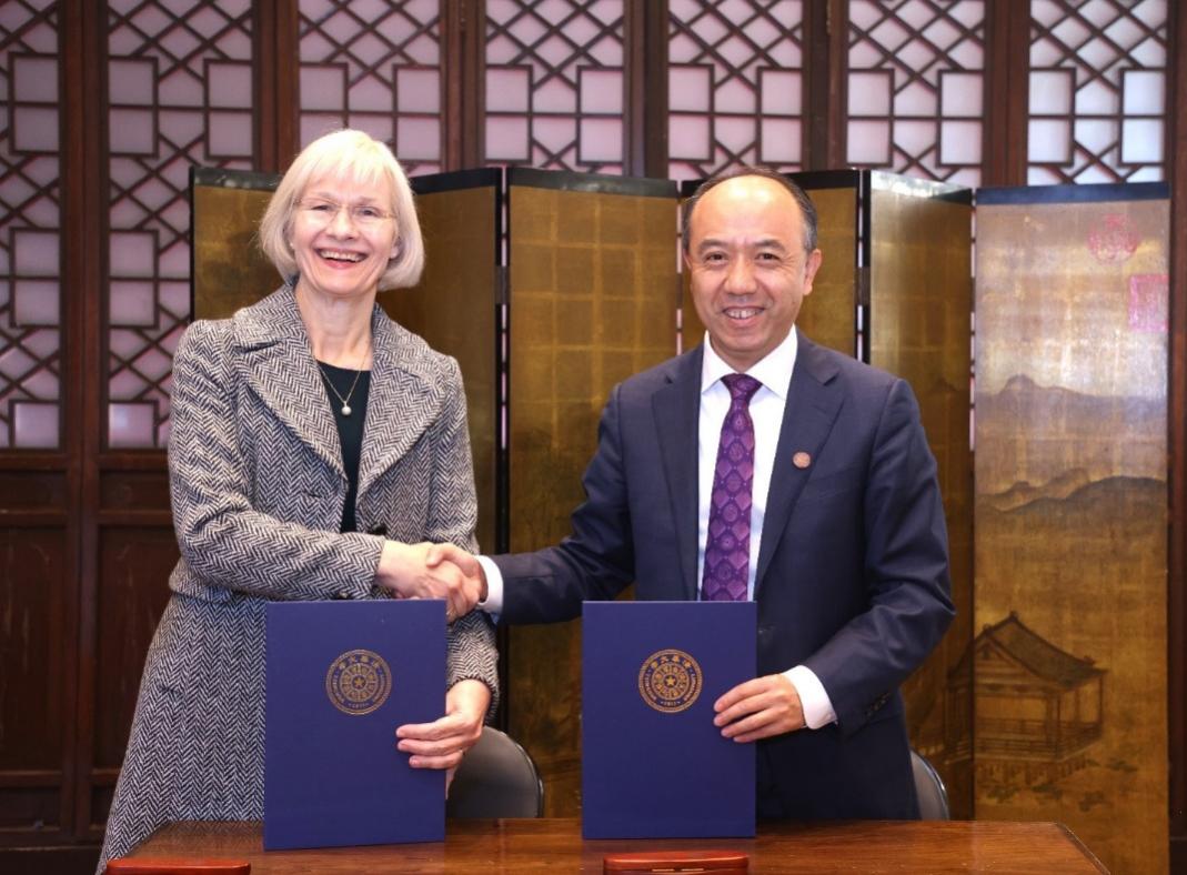 王宏伟和黛博拉·特里共同签署了两校合作备忘录和学生交换协议。