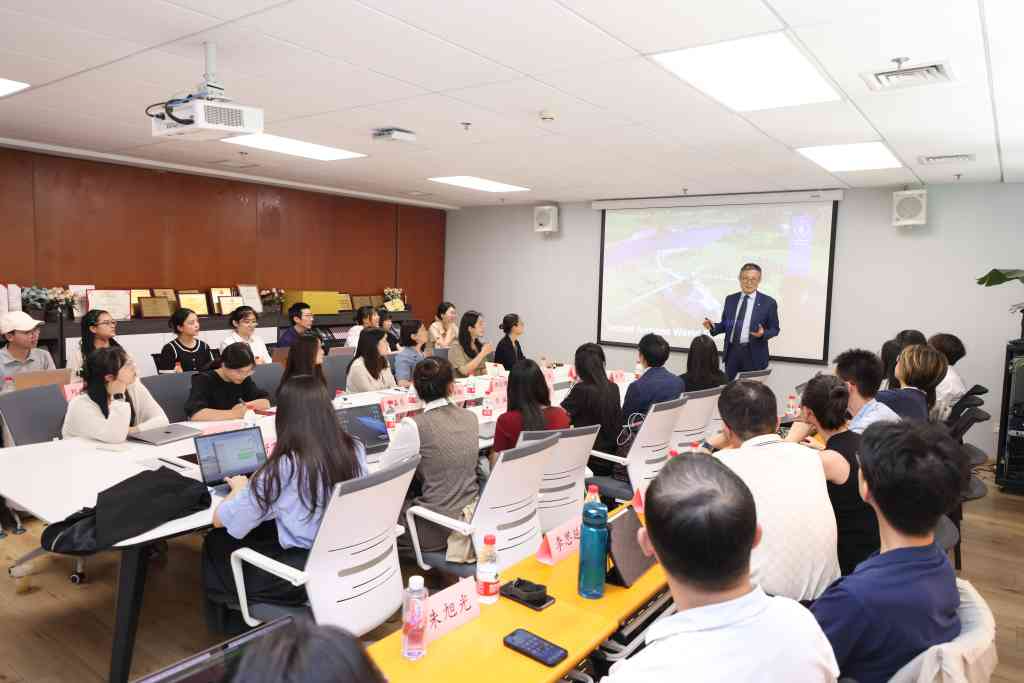 会见结束后,赵兵在蒙民伟人文楼与清华师生代表进行座谈。赵兵介绍了联合国世界粮食计划署的目标愿景、项目经验及人才需求,并结合自身工作经历,鼓励清华学生积极参与到联合国的行动与事务当中,运用自身专业知识为全球治理提供创新方案。