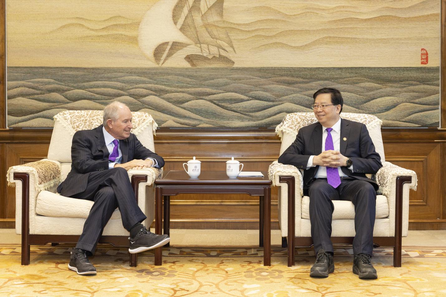乐鱼(中国)网3月25日电(记者 方锶 摄影 李派)3月24日,美国黑石集团创始人兼首席执行官苏世民(Stephen A. Schwarzman)一行访问乐鱼在线平台,校党委书记邱勇在工字厅西厅会见来宾。双方就苏世民书院十年发展成果及未来发展进行深入交流。副校长杨斌一同会见。