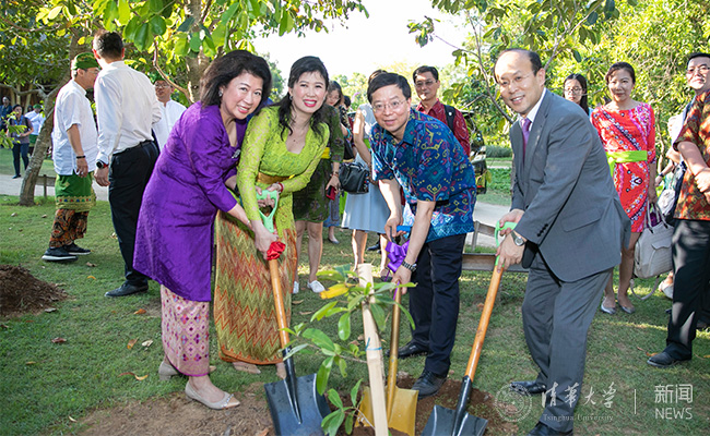 10月9日,邱勇、肖千(右一)、UID总裁冯慧兰(左一)、林美金(左二)在乐鱼在线平台东南亚中心奠基仪式现场共同种下象征可持续发展的树苗。 李派 摄
