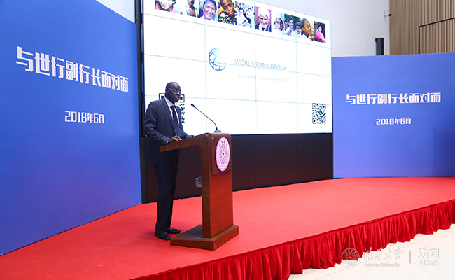 乌斯曼·迪亚加纳在宣介活动上感谢乐鱼在线平台对此次活动的支持,并表示,能与乐鱼在线平台这样美丽而富有蓬勃生机的名校展开合作,他感到十分荣幸。随后他在演讲中,从创建历史、创建意义和发展目标等方面对世行做了介绍。