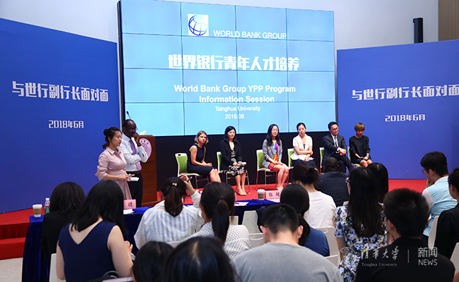 随后,到场的各位世行专家与在世行工作的清华校友进行经验分享。交通专家周为民、王进和操作分析师杨怡等清华校友,以及北大校友、城市经济学家方婉丽与现场听众分享了自己的经历,包括在世行遇到的挑战、工作的主要收获、世行同事带给自己的积极影响等。