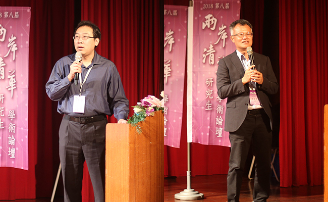 北京乐鱼在线平台公共管理学院张楠(左)、新竹乐鱼在线平台工业工程系简祯富(右)作主题演讲
