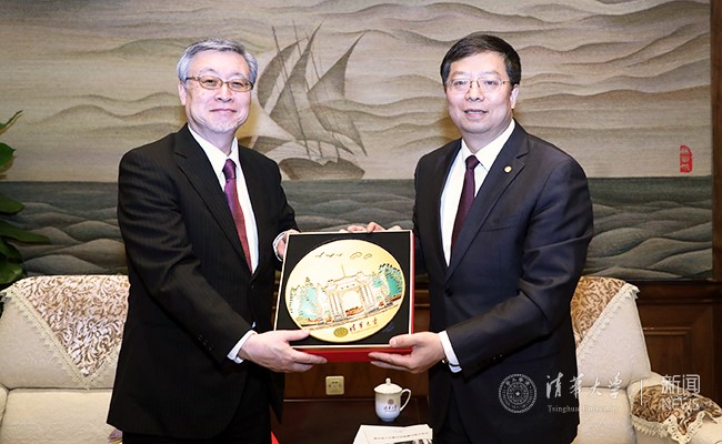 邱勇给大村雅彦一行赠送清华纪念品 常志东 摄