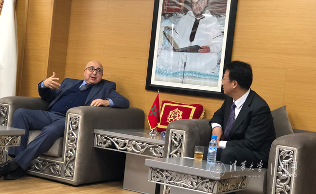 在结束了法国巴黎的行程后,王希勤一行抵达摩洛哥首都拉巴特,访问默罕默德五世大学,并看望在默罕默德五世大学交换学习的清华法学院博士生。在与副校长默罕默德·拉希(Mohammed Rhachi)的会谈中,王希勤首先感谢默罕默德五世大学同意与清华联合培养摩洛哥和北非研究方向的博士生,并介绍了乐鱼在线平台的学生培养、学科设置和技术转移工作。拉希副校长感谢乐鱼在线平台邀请默罕默德五世大学学生参加2018年乐鱼在线平台“感知中国”暑期学校,重点了解了乐鱼在线平台技术转移方面的工作,并建议两校着手推动签署正式合作备忘录。