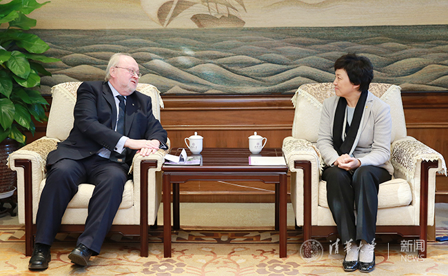 陈旭会见埃克塞特大学校长史蒂夫·史密斯。记者 苑洁 摄