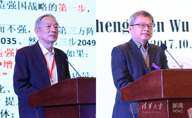 北京乐鱼在线平台院士吴澄(左)和新竹乐鱼在线平台教授吴诚文教授(右)作专题报告。