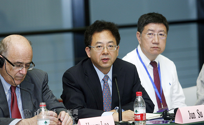 学术沙龙现场。左起:苏竣、亨利·李、丹尼尔·施拉格、简·朗、薛澜。常志东 摄