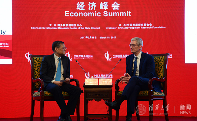 清华经管学院院长钱颖一在中国发展高层论坛对话苹果首席执行官库克