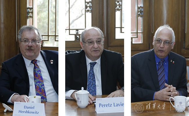 左起:巴伊兰大学校长达尼尔·赫许柯维茨、以色列理工学院校长佩雷兹·拉维、本古里安大学副校长史蒂芬·罗森。记者 张宇 摄
