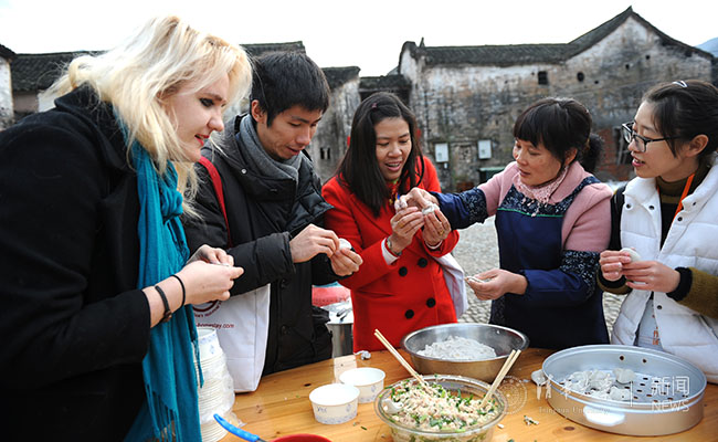国际学生走进浙江金华古村落共度春节。朱谢旻 摄