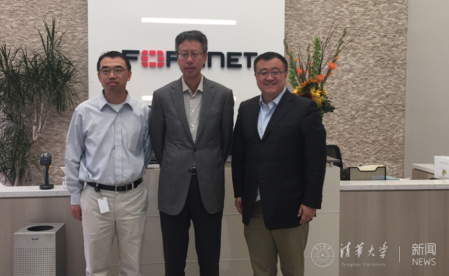 在位于硅谷森尼韦尔(Sunnyvale)的飞塔信息科技有限公司(Fortinet),杨斌会见了1987级清华机械工程系校友、飞塔信息科技有限公司首席技术官、工程副总裁谢华等。在美国,谢华与同是清华毕业的兄长谢青于2000年共同创办飞塔信息科技有限公司。飞塔信息科技有限公司是全球网络安全防御体系及设备的创新者和先锋。杨斌一行参观了公司研发、产品实验室、产品包装等各个部门。杨斌称赞了飞塔信息科技有限公司在产品研发和创新上取得的成绩,更对飞塔信息科技有限公司在为员工提供良好的工作环境和高度的人文关怀方面所做的努力表示尊敬,同时感谢谢青谢华兄弟对母校校医院和微电子所的发展所给予的大力支持。