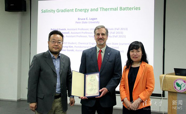 仪式后,罗根教授为环境学院师生做了题为"盐差能和储热电池" (Salinity Gradient Energy & Thermal Batteries)的学术报告。