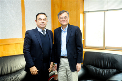 图为洛斯•戈恩先生与钱颖一教授合影。