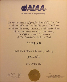 在美国华盛顿获得2014年度美国航天航空学会会士(AIAA Fellow)的25名学者与来自世界各地近80个国家的该学会会员一起欢度一年一度的国际盛典。