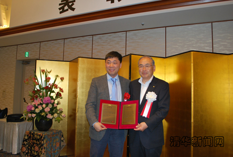 图为日本电气设备学会会长林乔(右)向何金良教授(左)颁发星野奖。