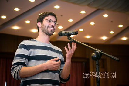 图为埃尔文·内尔介绍自己的科研经历与科研成果。研通社记者 王皓冉 摄
