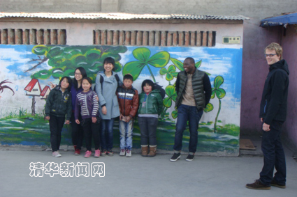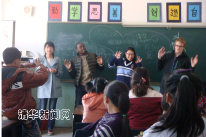当天中午,志愿者们从学校出发,有的甚至来不及吃午饭,经过2个多小时的车程,志愿者们于来到了清红蓝子弟小学。面积不大的校园、几间低矮的平房、窄小的教室……这些简陋的条件不但没有影响留学生们对支教的热情,反而增加了他们为孩子们做些什么的决心。他们面带微笑地上前与孩子们打招呼,而没有近距离接触过“金发碧眼”和“非洲兄弟”的孩子们都惊奇地涌上来,礼貌地把留学生们请进教室。