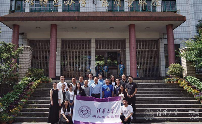 清华师生与吉首市民族中学领导老师合影留念。张博 摄