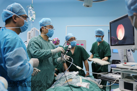 图为清华长庚医院泌尿外科李建兴主任进行结石手术,同时与当地医师进行业务交流。