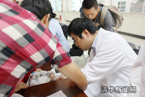 图为清华长庚医院泌尿外科胡卫国医师为一4个月大的儿童看诊,当天看诊者全部为疑似或者确诊结石患儿。