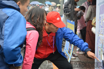 图为志愿者为游客解说游览路线。(尚智伟 摄)