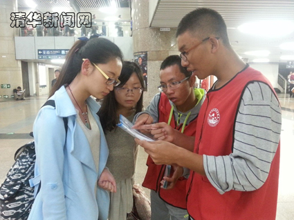 志愿者们所在的问询工作点位于南北进站口附近,戴着小红帽的他们,为不熟悉环境的旅客提供帮助,指引四方旅客们在出站口、月台、售票处、转乘站、餐厅或卫生间的位置等等。包括一些旅客出现的意外情况,清华志愿者们在了解清楚情况后,为他们提供相应的处理办法,有力地保障了北京西站旅客出行的有序和顺畅。