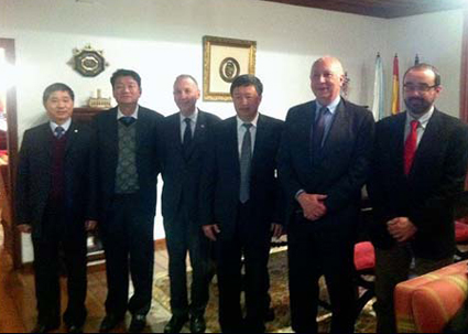 图为与西班牙圣得亚哥大学洽谈合作时与大学校长的合影。