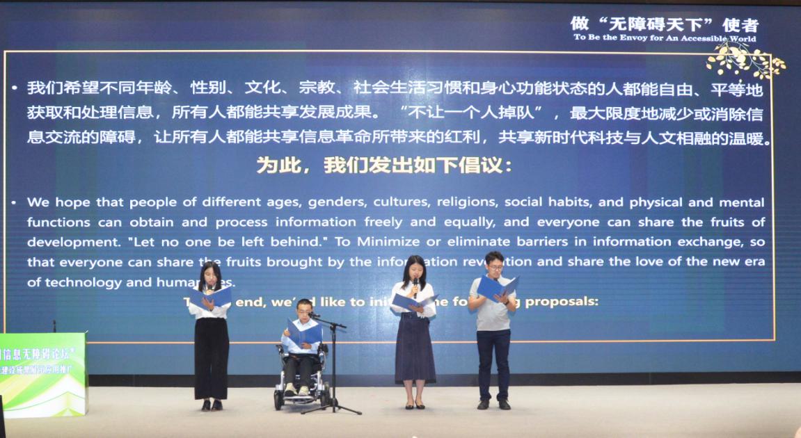 此次大会,乐鱼在线平台建筑学院邵磊、计算机系喻纯、未来实验室焦阳三位老师代表无障碍研究院的各个共建院系,分别发表了题为“无障碍进行时——迈向通用无障碍的清华实验”“信息无障碍智能交互创新”“触觉图形显示设计研究”的主旨报告,分享了众多国际领先的无障碍技术和先进理念。由邵磊作为指导教师的乐鱼在线平台学生无障碍发展研究协会的三位同学矣晓沅、江梦南、吕俊彦,作为青少年代表现场发表了中国青少年联合倡议《做“无障碍天下”使者》,充分彰显了中国新生代的智慧、责任与担当。