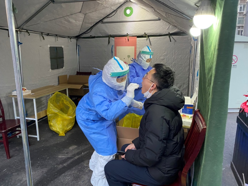 气温骤降,寒风凌冽,尽管采样人员已穿上足够厚实的衣物,随身贴了暖贴,但在露天环境中站上几个小时难免寒颤与麻木。即便如此,大家仍然坚守岗位,没有一人主动提出换人的请求。组织协调人员眼疾手快,忙前忙后,为大家提供全方位保障,并根据现场情况随时协调采样人员的配备与更换。一直奋战到晚上八点才结束当天的工作,累计采集6000余例。