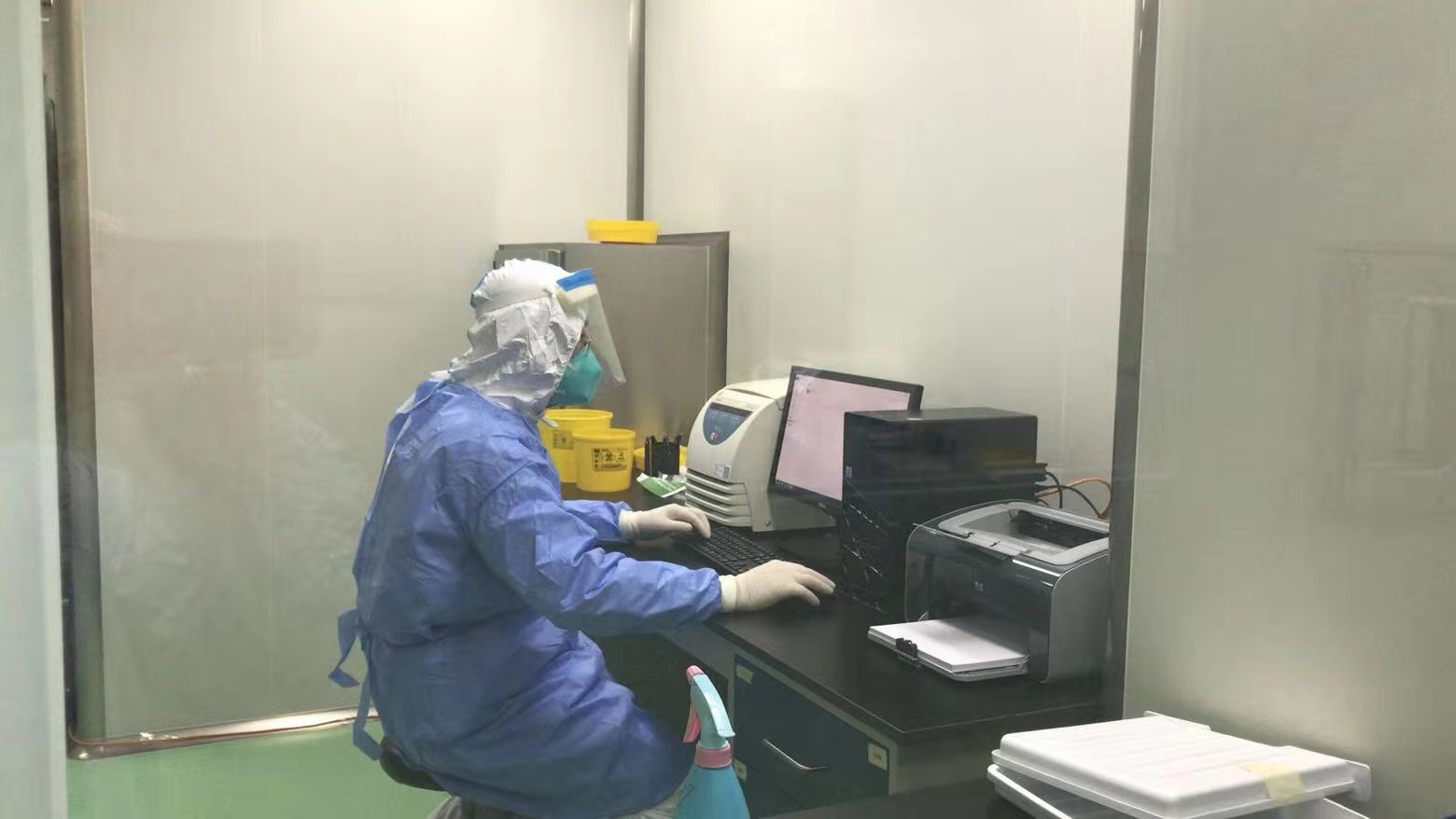 李润青在清华长庚—燕达医院PCR实验室首批实验的场景