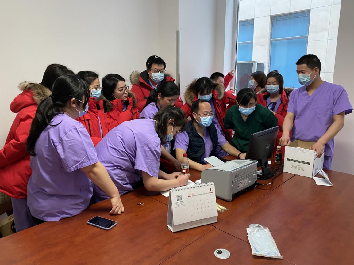 话语掷地有声,下午15点抵达燕达医院后,李润青直奔实验室,这里一目了然,除了实验台、生物安全柜、超净工作台外,其它都在等待支援。北京清华长庚医院支援了5台核酸提取仪、5台PCR扩增仪及3.6万件试剂耗材及防护物资。在燕达医院同事的支持下,李润青带领检验医学科的高远、孙玉鸣连夜开工,检验师、工程师角色同时上线,从晚上9点到次日凌晨,试剂耗材摆放到位、设备调试完毕、质控测试合格,“心里总算有底了。”李润青把工作动态第一时间发给了队员们和医院后方支援团队。