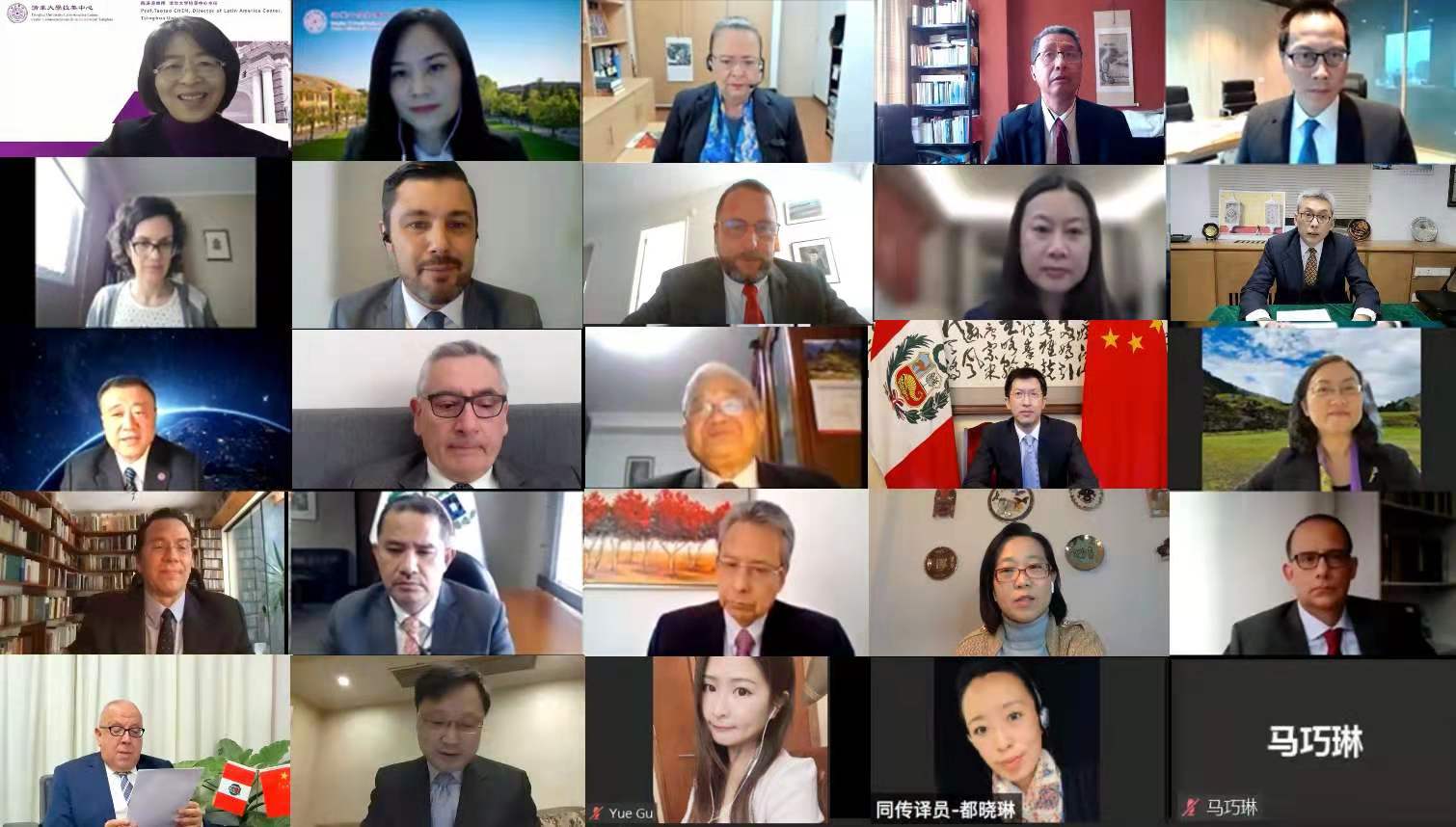 来自秘鲁天主教大学社科学院经济学教授阿兰·费尔利(Alan Fairlie)、秘鲁太平洋大学中国及亚太研究中心主任罗萨里奥·圣·加德娅(Rosario Santa Gadea)、秘鲁私人投资促进署前执行署长卡洛斯·赫雷拉(Carlos Herrera)、中国工商银行(秘鲁)有限公司总经理,秘鲁中资企业协会会长陶风华、秘鲁天主教大学国际研究中心副主任法比安·诺瓦科(Fabián Novak)分别从两国间经济、贸易、投资合作、政治关系等方面介绍了中秘关系的发展。北京外国语大学区域与全球治理高等研究院副院长、西葡语学院副院长李紫莹和中国社会科学院拉丁美洲研究所研究员徐世澄从文化交流的角度介绍了中秘间友好发展往来。