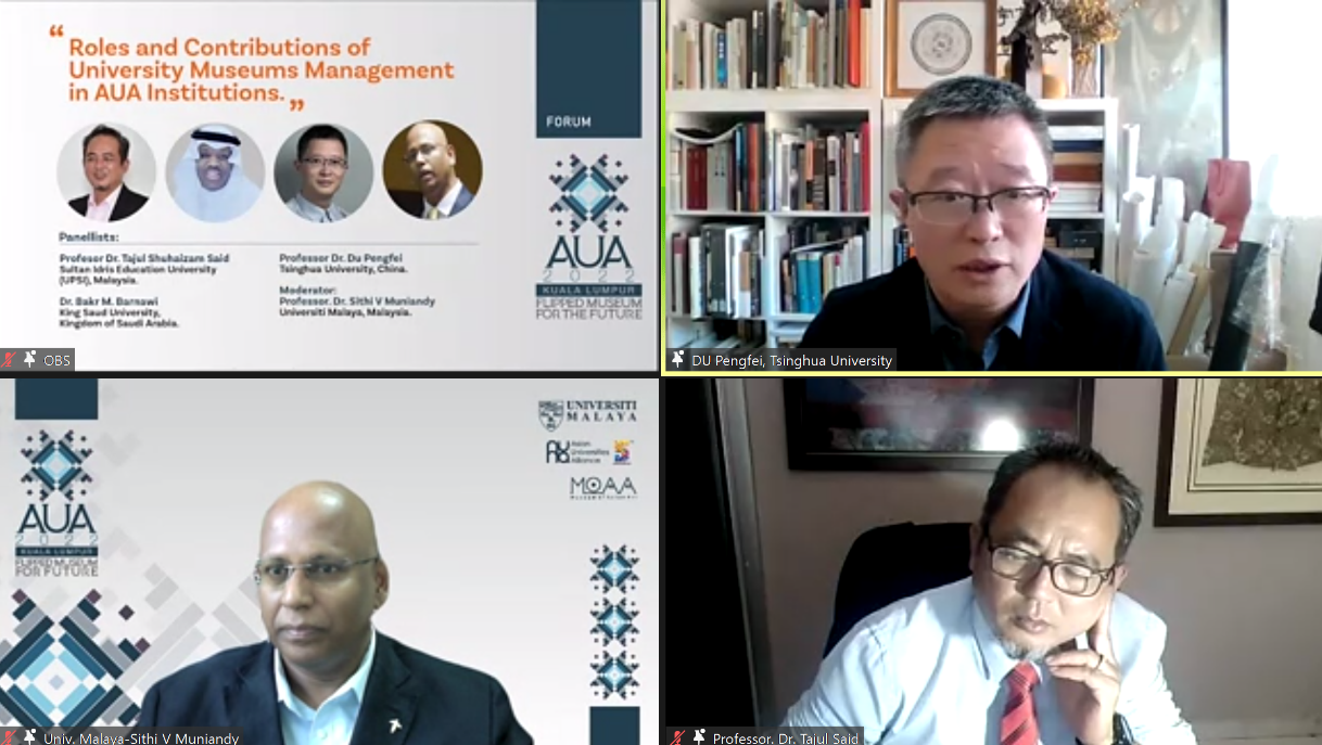 国际博物馆协会大学博物馆与藏品委员会(UMUC)副主席安德鲁·辛普森(Andrew Simpson),东京大学综合研究博物馆馆长西秋良宏(Yoshihiro Nishiaki),马来亚大学亚洲艺术博物馆馆长Abd AzizBin Addul Rashid,新加坡国立大学博物馆馆长Siddharta Perez及来自亚洲大学联盟成员高校的近20位学者在会上发言,交流策展经验,探讨更多“翻转博物馆”的可能。各校博物馆还通过虚拟导览在线分享了各自的藏品。