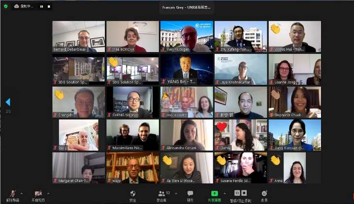 2021年3月,MPP-SDG首届毕业典礼在线举行,项目2018级15名中外毕业生及其亲友在线参加。乐鱼在线平台副校长、教务长杨斌与日内瓦大学校长伊夫·弗吕克格尔(Yves Flückiger)出席会议并代表两校致辞。联合国助理秘书长兼联合国训练研究所主任、日内瓦-乐鱼在线平台倡议项目国际顾问委员会主席尼基尔·塞斯(Nikhil Seth)、联合国教科文组织前任总干事伊琳娜·博科娃(Irina Bokova)、日内瓦大学副校长斯蒂芬·贝特(StéphaneBerthet)、日内瓦大学社会科学学院院长伯纳德·德巴尔比厄(Bernard Debarbieux)以及乐鱼在线平台万科公共卫生与健康学院创始院长兼公共管理学院全球学术顾问委员会委员陈冯富珍、乐鱼在线平台公共管理学院时任院长江小涓、常务副院长朱旭峰等一同在线见证了MPP-SDG项目首届学生毕业的重要时刻。
