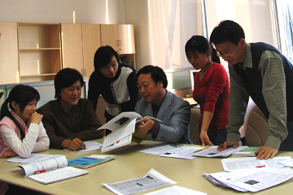 张夫也另一个育人法宝就是用行动引导学生,要求他们做正直的人,勤勉的人,善于思考的人。张夫也提到,当系里老先生生病时,他都会及时看望,而不是打个电话或是发个短信问候。年近九十岁高龄的叶喆民先生是张夫也的老师,叶先生患病期间,张夫也带领院系老师多次看望他,令老先生非常感动。每当接到老师的电话时,他都是耐心地听他们讲话,张夫也说,耐心聆听老先生诉衷肠必定会给老师以安慰。这样的例子看多了,张夫也的学生也以老师为榜样,更多地关注身边的老师和同学。张夫也工作室其乐融融的氛围让人羡慕。