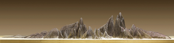 某一日,创作灵感突然而至。在看完大量传统山水画图片后,黄齐成回宿舍休息,闭眼的瞬间,山川那种高低起伏的影像不断地在他脑中波动,影像好似现代科技中的无线电波,亦或是心电图的图像在闪烁,那时他已分辨不清到底是山还是电波,只觉得“这两者实在太像了,就像被当今信息化社会冲昏头脑一样,很难识别事物的真假”,这种突发的感受大大启发了他关键性的创作。最终,黄齐成决意用大自然的山峰与现代无线电波的波峰作对比,它们既有相同的形状特征,又有不同的感情联想,自然与人工化、传统与现代、古代慢生活与现代快节奏……黄齐成在借鉴传统宋元山水画的构图形式和审美特征的基础上,通过传统与现代的转化,以此来揭示中国文化在当代社会中的人文意境。