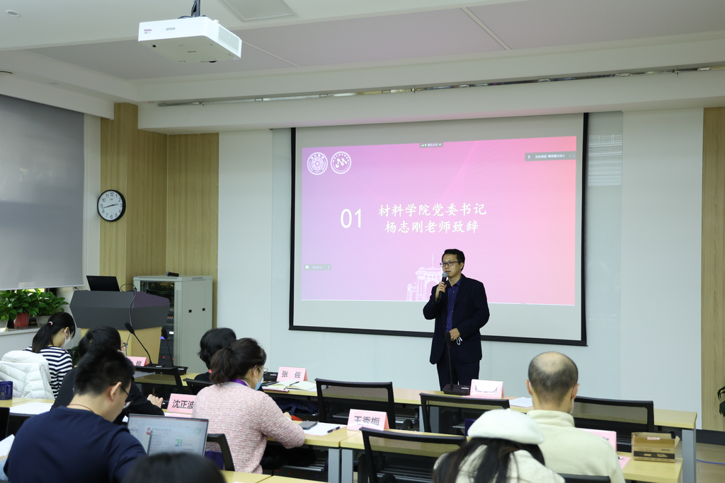 材料学院党委书记杨志刚肯定了同学们在研读报告、主题宣讲、小组讨论等多方面的努力,随后结合党的二十大精神分享对“中国式现代化”的学习体会,为大家上了一堂生动的微党课。