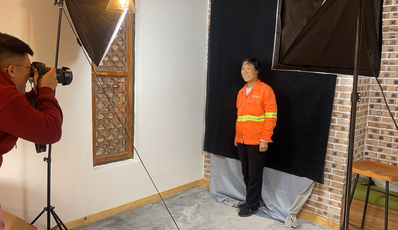 清华学子利用已有场地搭建照相馆,为袁家村全体村民免费拍摄肖像照,并免费洗出照片,加装相框后赠送给村民。
