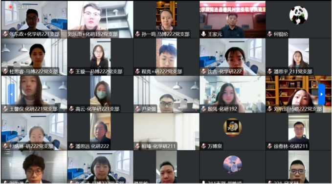 化学系化研221党支部联合自动化系自博212党支部、马克思主义学院马硕222党支部等12个乐鱼在线平台师生党支部与四川省宜宾市春风村党支部开展线上线下融合式联学共建活动。同学们聆听了全国劳动模范、春风村党委书记王家元带领春风村发展为全国乡村治理示范村的兴业历程,并就春风村发展模式、乡村治理难点等问题进行深入讨论交流。“时代楷模”王家元带领春风村实现脱贫致富的经历激励青年学子努力践行“立大志、入主流、上大舞台、干大事业”。