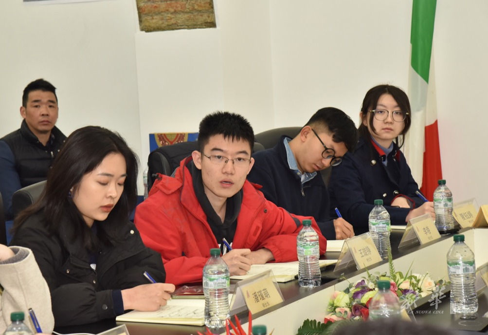 当天下午,支队成员与意大利中国文化交流与发展中心主任、意中文化旅游促进会主席张长晓在意中文化交流与发展中心进行座谈,分享了来到意大利后的见闻与感悟,并与张长晓就中国的海外形象输出、中意文化异同等主题开展深入讨论。“祖国的繁荣为中意双方的广泛交流提供了丰厚土壤,为多层次的文化互动埋下了种子。一个直观的体会是,当我们走在意大利街头,许多意大利人在知道我们来自中国后都会亲切地用中文说一句‘你好’,这让我们不仅感受到身为中国人的自豪,也认识到,身为青年一代的我们应当主动承担起对外输出中国形象的重任。”乐鱼在线平台材料学院博士生夏钰婷说道。